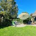 La parcelle est richement aménagée en jardin doté d'un joli cabanon-chalet, d'une ravissante terrasse-pergola, d'une terrasse exposée en plein soleil et d'une agréable terrasse couverte devant le séjour.